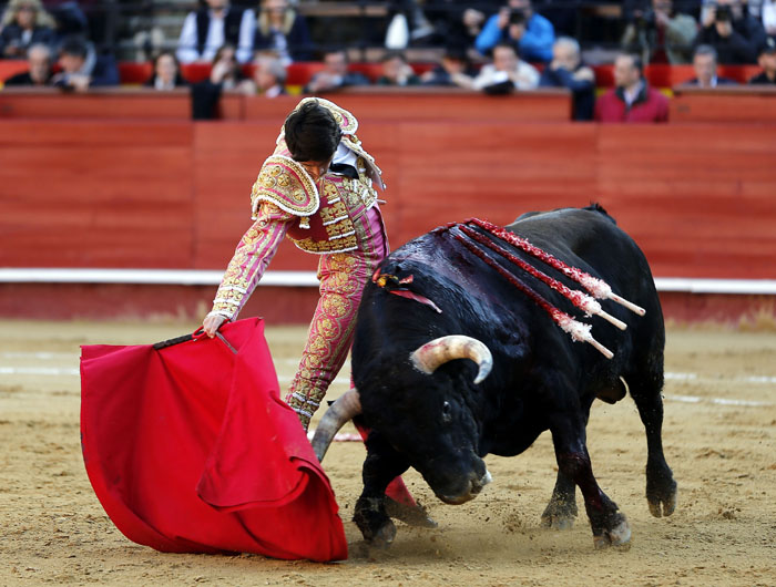 Sebastián Castella sorteó por delante un toro con fondo que le permitió instrumentar una faena abundante de muletazos sobre ambas manos y de largo metraje. El de Victoriano del Río no fue un toro fácil, más bien exigente, que reponía sobre el pitón derecho unas veces, otras gazapeaba o se quedaba más corto. No regaló ninguna embestida. A la faena del francés, rematada de pinchazo y media estocada, le faltó conectar con los tendidos. El cuarto manseó en los primeros tercios, sin embargo supo sujetarlo Sebastián Castella en los medios. Fue un toro con movilidad si bien embistió informal. Lo intentó y le buscó las vueltas el francés en otro trasteo largo y de poco relieve.