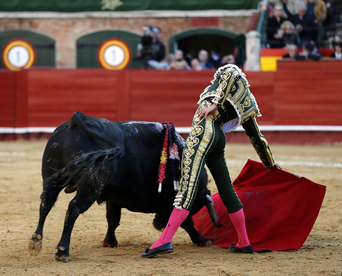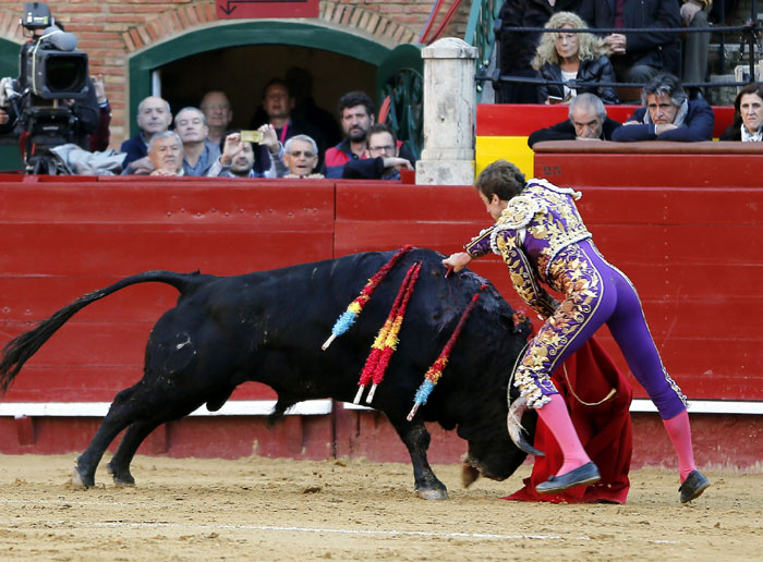 Soberbios los dos pares que le sopló Curro Javier al quinto, obligado a saludar al igual que lo hizo Javier Ambel en el segundo. Al burraco de Victoriano del Río no le sobraron las fuerzas, falto de transmisión y de empuje, el extremeño lo llevó a media altura en los primeros compases. No le pudo someter mucho Perera, sin embargo lo hizo en una serie en redondo ligada y rotunda y en otra en el tramo final como antesala a un broche de faena en terrenos de cercanías donde se mostró como pez en el agua: dos circulares invertidos y completos y engarzados con los de pecho sin enmendar la planta. De largo metraje el trasteo, sonó un aviso antes de entrar a matar y cobrar una estocada entera. Las dos orejas fueron excesivo premio.