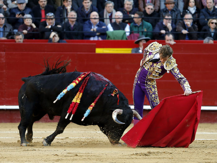 Valencia, jueves 16 de marzo de 2017. Toros de Victoriano del Río. Desigualmente presentados. Un primer toro incómodo, que reponía; rajado el segundo; áspero y duro el mansurrón tercero; informal, bajo de raza y deslucido el cuarto; noble y manejable pero sin transmisión; parado y deslucido y muy parado el sexto. Sebastián Castella, silencio tras aviso y palmas tras aviso; Miguel Ángel Perera, silencio tras aviso y dos orejas tras aviso; Román, oreja y silencio; Entrada: Tres cuartos de plaza. Saludó en banderillas Javier Ambel en el segundo de la tarde y Curro Javier en el quinto y en el sexto Raúl Martín y El Sirio.