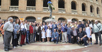 Entre todos depositaron en la estatua con la que cuenta el propio Montoliu en la explanada de la plaza de toros de Valencia la tradicional corona de laurel.
