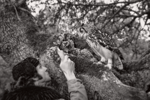 Por otro lado aparece un búho posado sobre la montera, un animal que para algunos trae mal fario y para otros suerte de por vida si se le mira sin asustarle, con el que Morante juguetea y pasea entre toros y cerdos por la dehesa salmantina.