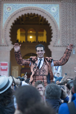 Morenito de Aranda cortó las dos orejas al quinto, un toro extraordinario de Montealto, número 58, "Frutero" de nombre, de pelo castaño y de 524 kilos, para el que se pidió la vuelta al ruedo en el arrastre. Morenito realizó una faena con él muy entregada desde el principio: se fue a portagayola y toreó después con la muleta muy despacio, muy relajado y con profundidad, sobre todo por el pitón izquierdo. Triunfó en Las Ventas la personalidad y clase de este torero en una faena muy bien acogida por el público. La buena estocada con la que tumbo al astado puso en sus manos la salida a hombros.
