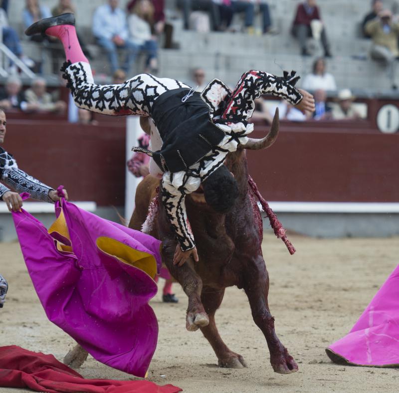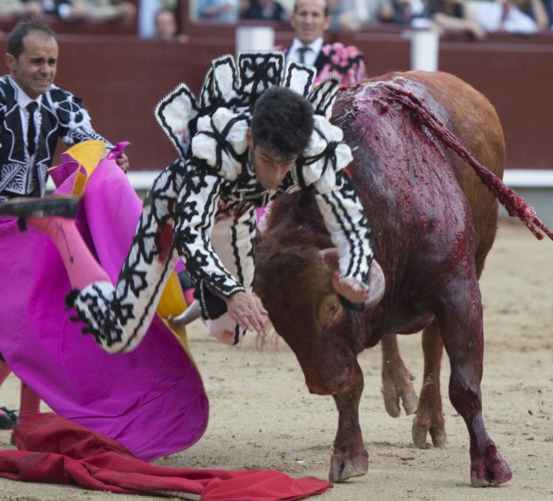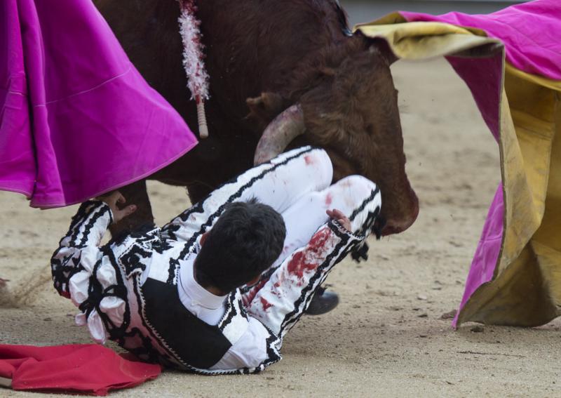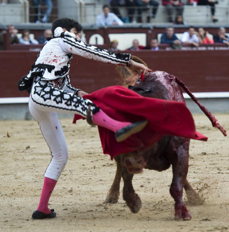 Alberto López Simón fue herido este sábado en Madrid por el tercer toro de la corrida. El madrileño, que permaneció en el ruedo no sólo hasta dar muerte a ese toro, sino hasta acabar con el segundo astado de su lote -lidiado en cuarta posición para que el madrileño pudiese cumplir la gesta-, fue atendido en la enfermería de Las Ventas de una "herida por asta de toro en tercio inferior cara posterior muslo derecho con dos trayectorias, una descendente de 10 centímetros que alcanza hasta cara posterior de rodilla, contusionando paquete vásculo nervioso poplíteo; y otra ascendente de 25 centímetros que produce destrozos en músculos isquiotibiales y contusiona el nervio ciático".