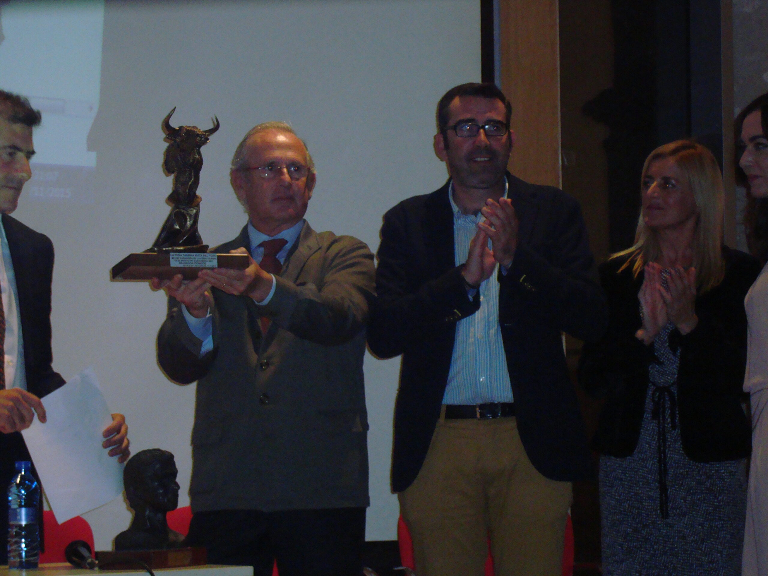 La Peña Ruta del Toro de Alcalá de los Gazules entregó el trofeo a la mejor ganadería lidiada esta pasada temporada en el abono de la Plaza Real de El Puerto de Santa María. El trofeo recayó en el ganadero Salvador Domecq Sáinz de Rozas, quien recibió el premio de manos del alcalde Javier Pizarro y del presidente de la entidad, Cristóbal Díaz, en un acto coordinado por nuestro compañero Luis Rivas y celebrado en el Centro Cultural Santo Domingo. El evento sirvió también para la presentación de la página web www.alcalataurina.com.