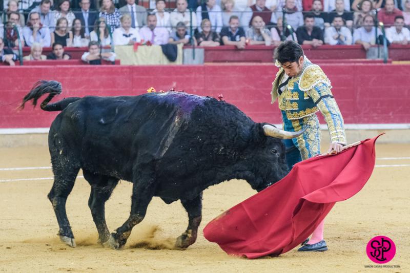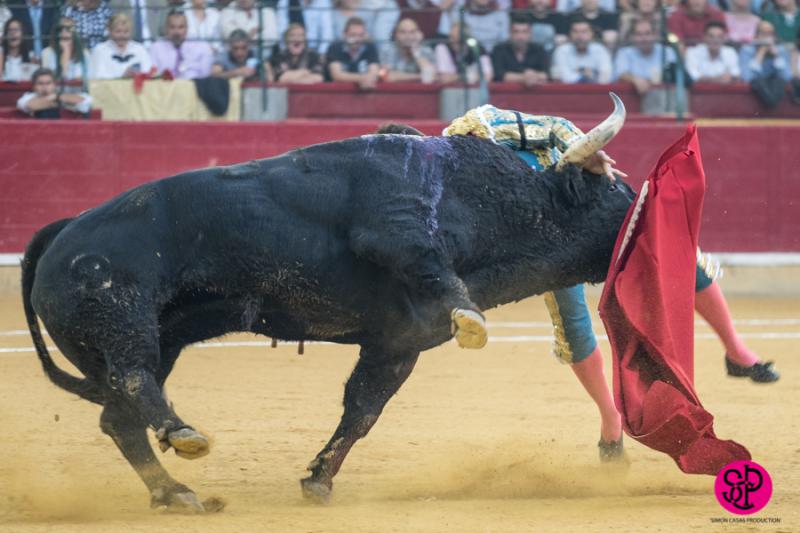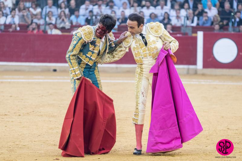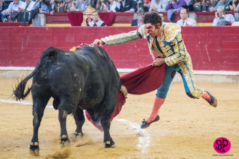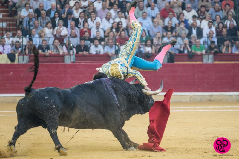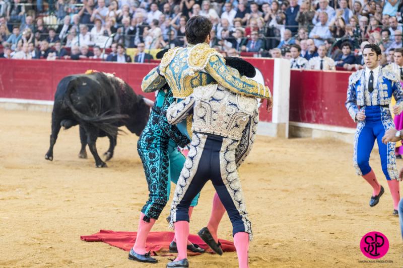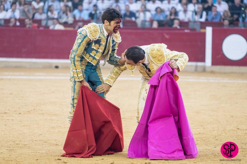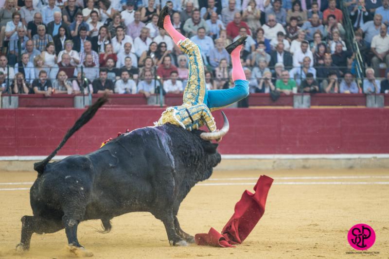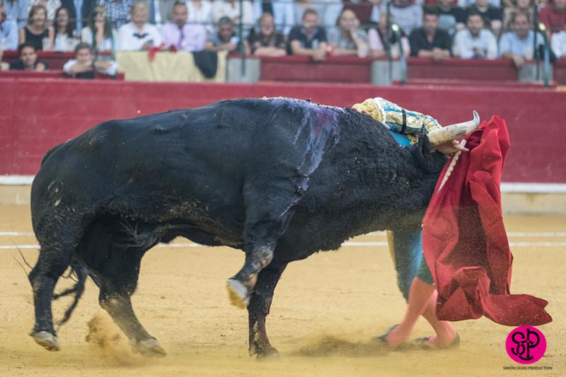 El diestro -trasladado a la Clínica Quirón de Zaragoza- fue prendido cuando citaba para torear al natural, sufriendo un seco derrote en el muslo, llegando a girar sobre los pitones. Salió del trance con la cara ensangrentada y una herida visible en la cara interna de la pierna, de la que sangraba profusamente. A pesar de ello, quiso seguir la lidia, dio una serie más sobre la mano derecha y dio muerte al toro de una estocada. La gesta fue recompensada por el palco presidencial con las dos orejas.