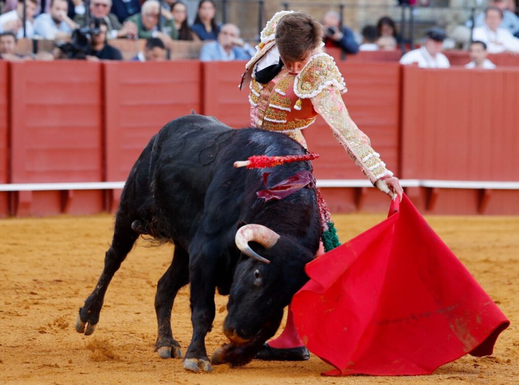 Alejandro Talavante lidió este martes una gran novillada en la plaza de toros de Sevilla. Un encierro completo para soñar el toreo. Tanto Osornio, del que gustó su concepto, como Norte, que paseó dos orejas y rozó la Puerta del Príncipe, y Bastos, que también tocó pelo, dejaron su sello en la Real Maestranza. La novillada de la Feria de Abril, en el objetivo de Arjona.
