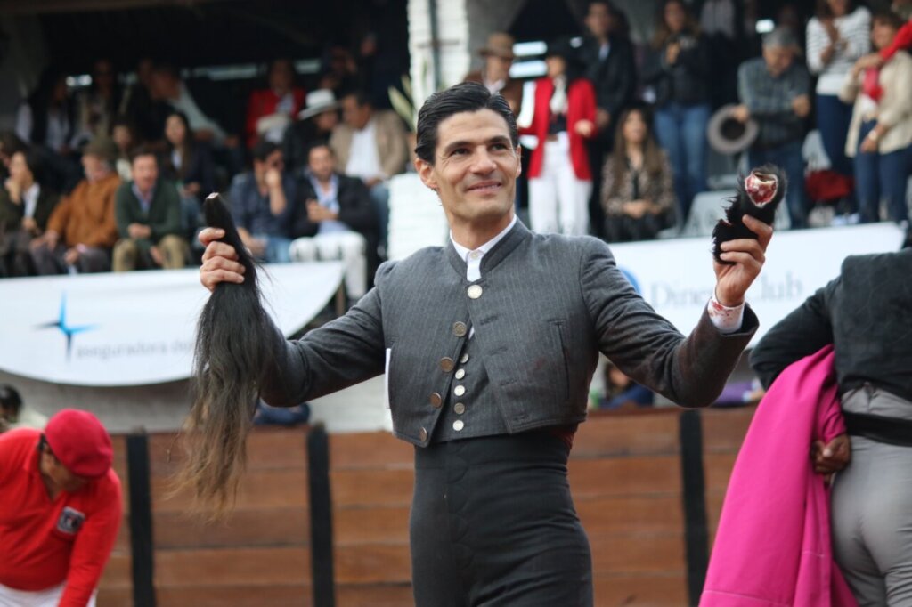 El sexto fue la culminación de la tarde. Segundo de Pablo Aguado, de Peñas Blancas, llamado Artista, 360 kg. Desde la salida se vio que era un toro especial: clase, fijeza, ritmo y transmisión. Aguado lo entendió desde el primer momento. Lo toreó en su línea pura, sin forzar, acompañándolo, dejándolo ser. En la tercera tanda llegaron los naturales eternos, lentísimos, con la muleta rozando la arena y la plaza entregada por completo. Remató con molinetes de sabor clásico y un cambio de mano sublime. El público pidió el indulto a gritos y se concedió. Artista volvió vivo a los corrales y Aguado paseó dos orejas y rabo simbólicos entre una ovación que no paraba. Ecuador lo siente como propio.