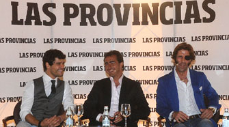 Juan José Padilla, Miguel Abellán y David Fandila "El Fandi" fueron los protagonistas ayer en Valencia del coloquio organizado por el diario Las Provincias, con el objetivo de reivindicar la Feria de Julio. El acto, que colgó el cartel de "No hay billetes", tuvo lugar en la terraza del Hotel Astoria y fue moderado por José Luis Benlloch, cerrando el mismo Pedro Toledano, columnista taurino de este medio.