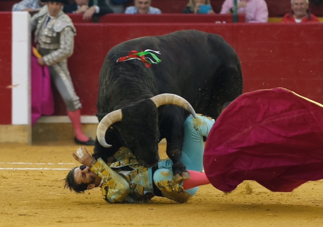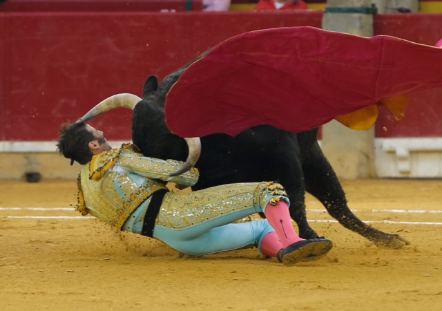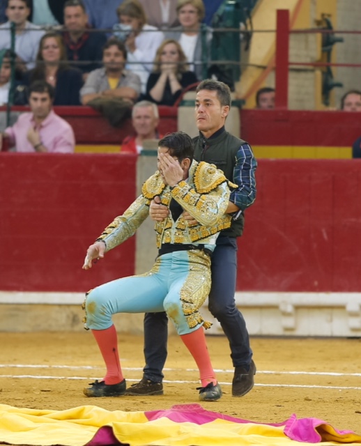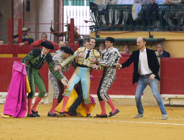 Juan José Padilla fue cogido por el primer toro de la tarde, rememorando el trágico percance que sufriera en esta misma plaza. El torero jerezano esperó a su primero a portagayola. El toro le arrolló y le propinó un fuerte pitonazo en el rostro, justamente en el parche que tapa el ojo que perdió en este mismo ruedo. Conmocionado, el torero pasó a la enfermería.