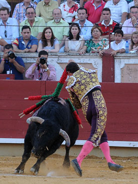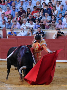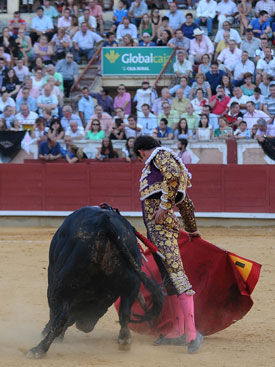 El segundo fue otro toro bueno, con movilidad, nobleza y clase. Intensidad de El Fandi en todos los tercios: larga y chicuelinas de salida; tres buenos pares de banderillas y una labor entregada, intercalando toreo templado con momentos de efervescencia. Buen conjunto. Muy vistoso. Perdió premios por una estocada defectuosa en los bajos.