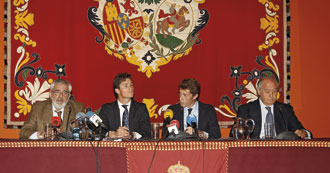 Ramón Valencia y Eduardo Canorea dieron a conocer durante la mañana del pasado martes los carteles de abono de la temporada 2014 en Sevilla. La empresa Pagés ha dado carácter oficial a las combinaciones de la Feria de Abril, el festejo del Corpus, San Miguel y las novilladas de abono, que componen un total de 14 corridas de toros, dos corridas de rejones, 6 novilladas con picadores y cinco sin ellos. El acto, celebrado en el coso de la Maestranza de la capital hispalense, contó con la participación de los protagonistas del Domingo de Resurrección, los toreros Daniel Luque y Manuel Escribano, además del ganadero Eduardo Miura.