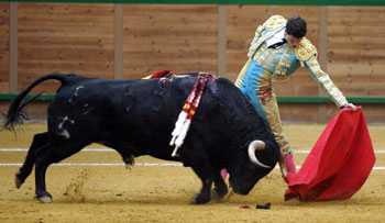 David Galván vio cómo su segundo se iba al corral. Un novillo imposible y peligroso que llevó a todo el mundo de calle. Valiente estuvo con el tercero, un ejemplar serio pero que nunca se entregó.