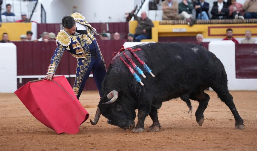 Debutaba Luque en Olivenza y no pudo mostrar su excelente capote más que en las chicuelinas del quite. Sin mover los pies ni un milímetro engarzó una serie por alto que remató con un trincherazo que hizo sonar a la música para luego torear en redondo, ligando los derechazos con los riñones encajados. Perdió intensidad la faena por el izquierdo y el de Gerena tiró de repertorio con las luquesinas finales para volver a activar al público.