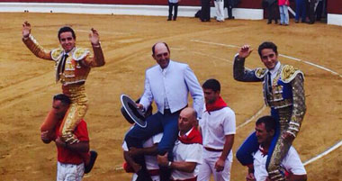 Hagetmau (Francia), 3 de agosto de 2015. Novillos de La Quinta, bien presentados y de buen juego. Destacó el 6º. Posada de Maravillas, oreja y oreja; Lilian Ferrani, oreja y ovación; y Joaquín Galdós, ovación y dos orejas.