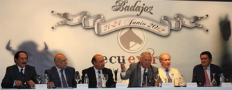 La IV Edición de la Feria del Toro y Feria del Caballo de Extremadura, Ecuextre 2012, se presentó a los medios de comunicación en el Espacio Arte y Cultura en Madrid. En al acto, al que asistieron los ganaderos Victorino Martín padre e hijo, aficionados y personalidades del mundo de la política y la cultura, intervinieron el alcalde de Badajoz Miguel Celdrán, el Delegado del Gobierno en Extremadura, Germán López, el Consejero de Agricultura, Desarrollo Rural, Medio Ambiente y Energía, José Antonio Echávarri, el Presidente de la Federación Hípica Española, Javier Revuelta del Peral, el Rejoneador Manuel Vidrié y el periodista taurino, Manolo Molés. En las distintas intervenciones se destacó la importancia de una feria como esta, única en España y que une a los aficionados al mundo del toro y del caballo, así como el amplio programa de actividades con el que contará la feria como son: Gran Exposición monográfica de Pablo Hermoso de Mendoza, tertulias taurinas con Manolo Molés o el Homenaje al matador de toros Juan Antonio Ruíz “Espartaco”; y referente al mundo del caballo, el Campeonato de España de Horse-Ball, el Campeonato de Extremadura de Campeones P.R.E.-Campeón de Campeones, el Concurso de Cobras Campeonas de Pura Raza Española-Campeonísima o Campeonatos de Extremadura de Hípica, entre otras. También destacan en la Feria de Noche, los días 22 y 23, un concierto del grupo musical sevillano “Siempre Así” y las finales del Campeonato de España de Horse-Ball. El periodista Manolo Molés, destacó también la importancia que la Feria del Toro y Feria del Caballo coincidan con las corridas de toros de las Ferias y Fiestas de San Juan en Badajoz, aprovechando la sinergia de los dos eventos coincidentes en espacio y tiempo, más aún con los excelentes carteles que presenta este año el coso badajocense, que convertirán a Badajoz en el epicentro del mundo taurino al contar con la esperada reaparición de José Tomas acompañado de Pablo Hermoso de Mendoza, Diego Ventura, Joao Moura, Ferrera, Padilla, Manzanares, Morante, Talavante y El Juli, entre otros.