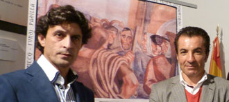 El alcalde de Palos de la Frontera, Carmelo Romero, el empresario Jorge Buendía y los matadores de toros José Pedro Prados "El Fundi" y José Doblado presentaron el jueves el cartel de la III Corrida Pinzoniana de esta localidad onubense.