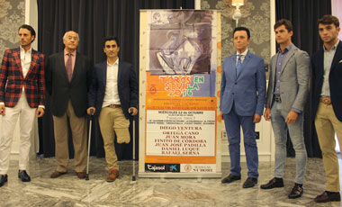 El festival se celebrará el miércoles 12 de octubre a las cinco y media de la tarde y el cartel está compuesto por el rejoneador Diego Ventura, los matadores de torosJosé Ortega Cano, Finito de Córdoba, Juan Mora, Juan José Padilla, Daniel Luque y el novillero Rafa Serna. El ganado será de María Guiomar Cortés de Moura, La Palmosilla, El Freixo, dos de Fuente Ymbro, Torrestrella y Guadaira.