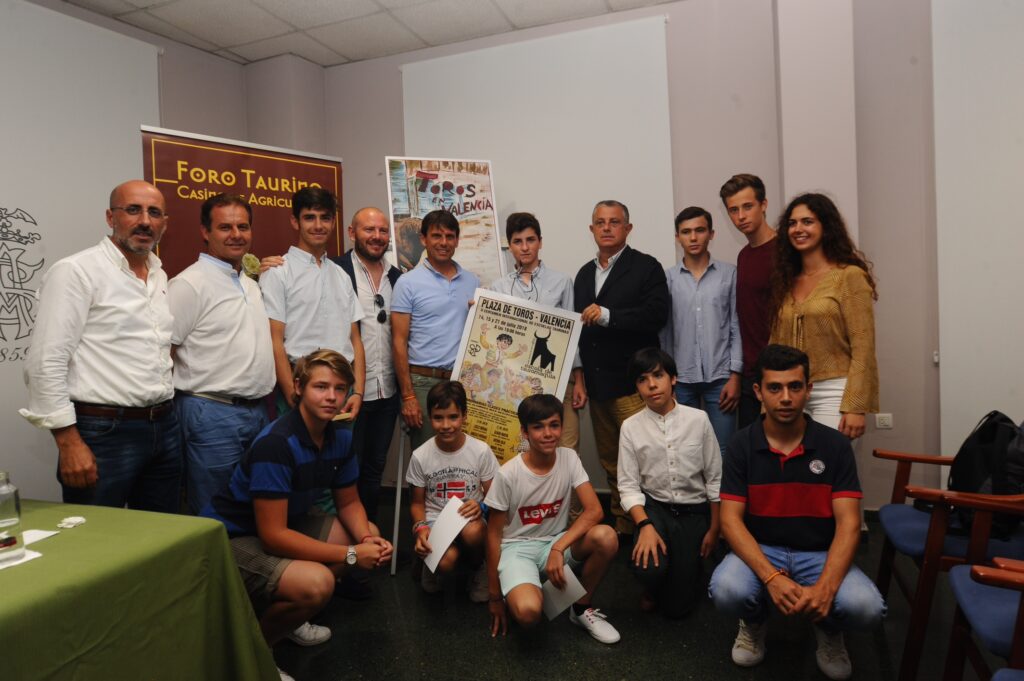El acto de presentación de los carteles de la Feria de Julio ha servido para dar a conocer también el II Certamen Internacional de Escuelas Taurinas organizado por la Diputación de Valencia, su Escuela de Tauromaquia y la empresa Simón Casas Production, y que se compone de tres clases prácticas a celebrar los días 13, 14 y 21 de julio. Los carteles los han dado a conocer el diputado de Asuntos Taurinos, Toni Gaspar, y el director del Centro de Asuntos Taurinos, Toni Gázquez, acompañados por los profesores de la Escuela y algunos de los alumnos.