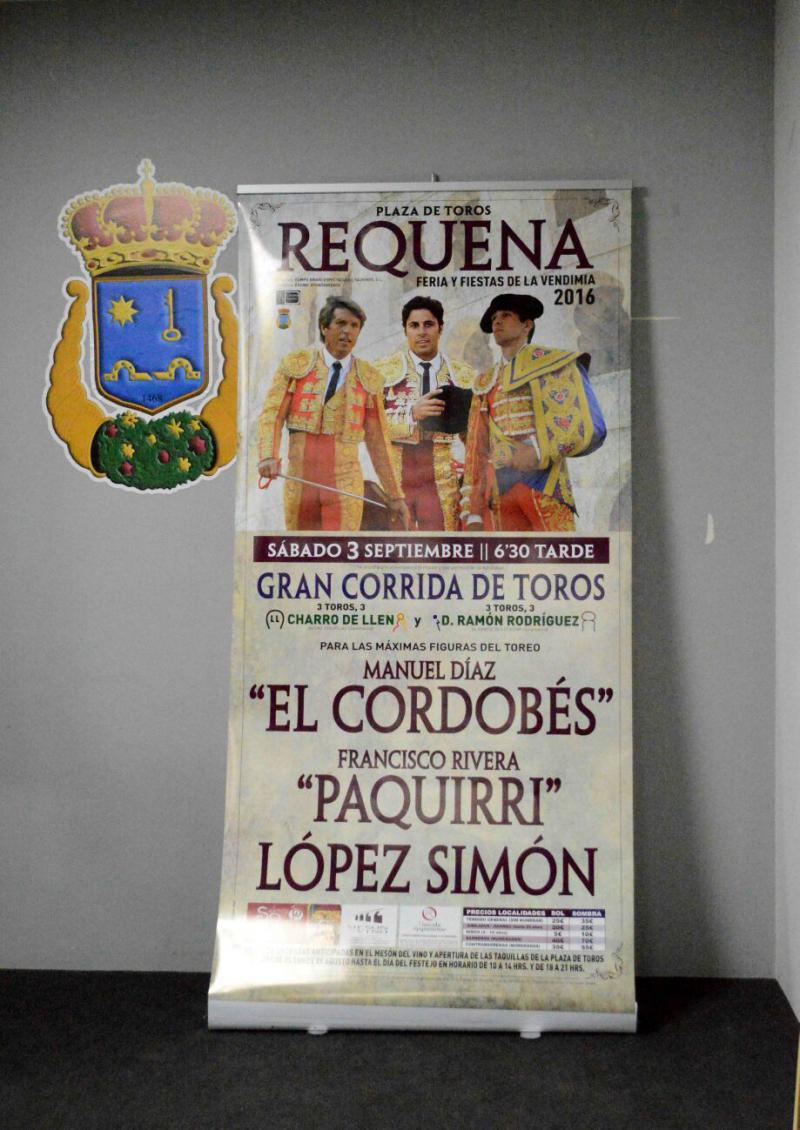 La empresa Campo Bravo Espectáculos Taurinos presentó en Requena el cartel de la tradicional corrida de toros que tendrá lugar el sábado 3 de septiembre con motivo de las Fiestas de la Vendimia. Con tres toros de Charro de Llen y tres de Ramón Rodríguez, harán el paseíllo Manuel Díaz “El Cordobés”, Francisco Rivera “Paquirri” y López Simón.