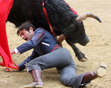 Abrió plaza Juan Bautista, que desorejó por partida doble al primero, un novillo muy noble con el que el francés anduvo sobrado; le siguió Fernando Robleño, que fue volteado en el epílogo de su faena de muleta, quedando dañado su hombro derecho, que se le salió, por lo que no pudo entrar a matar, rematando al animal Bautista, que cortó también las dos orejas.