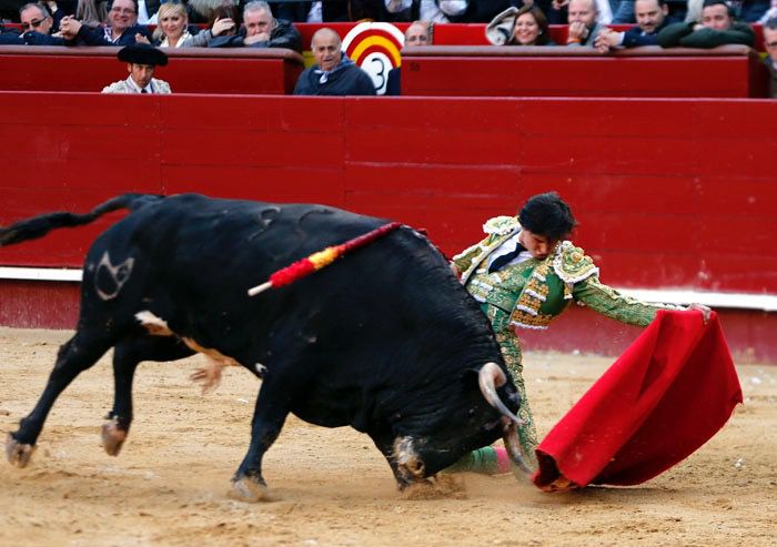 Una pausa para devolver al tercero de la tarde; visto lo que vino después se podría entender como una pausa para tomar impulso. Se corrió turno y salió Rosito, que estaba predestinado para cerrar plaza. Lo bueno, cuanto antes mejor. Rosito fue un toro lucero, girón y bragado. No era mucha cosa pero sí muy bravo. Le hicieron dos quites entre Castella y Roca, saltilleras, tafalleras, largas, medias… y Rosito no solo lo aguantó con entereza, sino que se vino arriba, lo necesario para que se desatase la tan deseada ciclogénesis, el momento estelar de la feria. Tardará tiempo en verse un arranque de faena tan tremendo, un tío tan seguro y un toro tan codicioso. En aquel pulso nadie se vino abajo. Arrancó Roca de rodillas, se cambió al toro por la espalda, una vez y otra vez, lo ligó con un natural y se desataron los elementos, las pasiones, se puso el personal en pie, se creció Roca, quieto como un mástil, mandón como un general, creativo como un innovador. Un cambio de mano por la espalda que parecía destinado a dar lugar a un pase de pecho, encontró la continuidad en un circular invertido que nadie esperaba ni creo que nadie haya visto jamás. Y ya todo fue un sin parar, sin importarle ni el viento, ni los terrenos, despreocupado de administrar al toro porque a esas alturas era evidente que el toro no tenía fin. Vino luego esa ruleta rusa de las manoletinas de por aquí y por allá para cambiarle la dirección en el último instante y la estocada final para dar paso a las dos orejas, al delirio y la confirmación de que con faenas así el fin -si es que hay fin- está muy lejos.