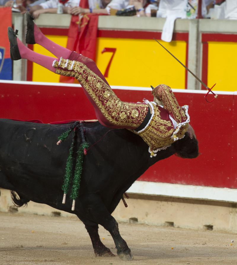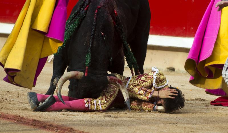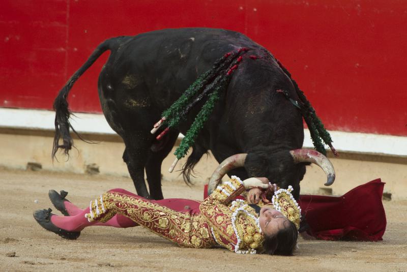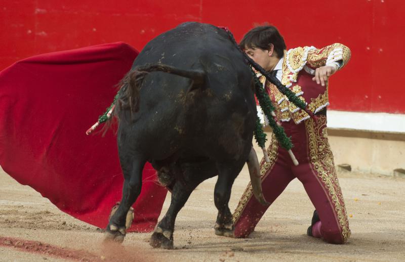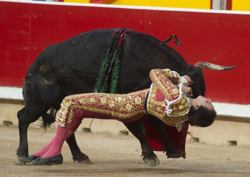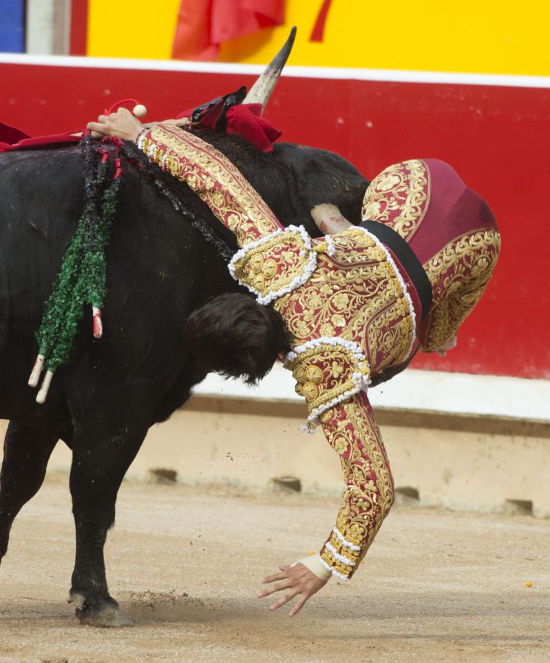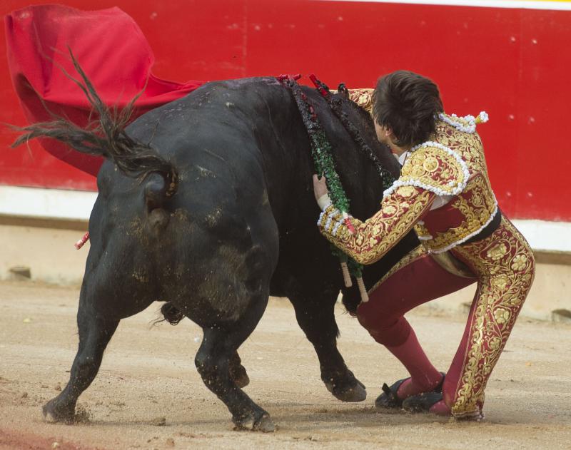 Roca Rey sufrió una durísima voltereta cuando iniciaba de rodillas la faena al tercer toro de la tarde. El peruano fue prendido por el bajo vientre, sufriendo la rotura de la bolsa escrotal. Se repuso y aguantó en el ruedo antes de pasear la oreja y pasar por su propio pie a la enfermería, donde fue atendido de una herida que, afortunadamente, no llegó a profundizar. Unos puntos de sutura le permitieron de nuevo salir a dar muerte al segundo toro de su lote.