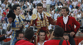 Hermoso de Mendoza, que desorejó al que abrió plaza, y Talavante, que paseó un trofeo de cada toro de su lote, abrieron la puerta grande junto con el alicantino.