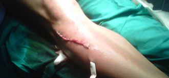 "Ha pasado la noche con las molestias lógicas de la cogida que aunque ha sido limpia, es una cornada extensa de 20 centímetros, que además ha roto la aponeurosis. Le cosieron y le colocaron un drenaje". Son palabras de Chema Díaz, hermano de Manuel Díaz "El Cordobés, sobre el estado de salud del torero, herido este sábado en La Línea de la Concepción. Tras ser intervenido durante más de una hora en la enfermería de la plaza de toros, fue trasladado a la Clínica USP de Marbella: "Al llegar le hicieron varias pruebas. Estaba muy preocupado por la rodilla. La cornada le causó un fuerte golpe en la zona de los ligamentos y se asustó mucho. En el año 1994 fue operado de la triada y pensaba que este toro le había vuelto a romper la rodilla. Pensó que se le había acabado la temporada. Afortunadamente sólo es una distensión que con cuatro o cinco días de reposo estará solucionado". "El torero se encuentra muy animado pero sobre todo, interiormente muy satisfecho después de una actuación buenísima -continúa- y de haber logrado varios triunfos consecutivos muy importantes". Chema, que no se separó un instante de su hermano, recuerda cómo ocurrió la cogida: "El presidente sacó el pañuelo naranja y Manuel quiso pegarle un par de tandas más. La gente vivió toda la faena prácticamente de pie. Fue muy emocionante e intenso. Él se contagió… se emborrachó de toro". Sobre los plazos de recuperación del torero, Chema comenta: "El martes le harán una prueba porque tiene un coágulo en la rodilla que debido a la inflamación que ha provocado la herida no sé sabe si es líquido o sangre. Le han colocado una férula y deberá tener varios días la pierna inmovilizada", concluye.