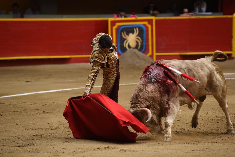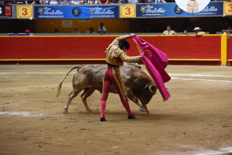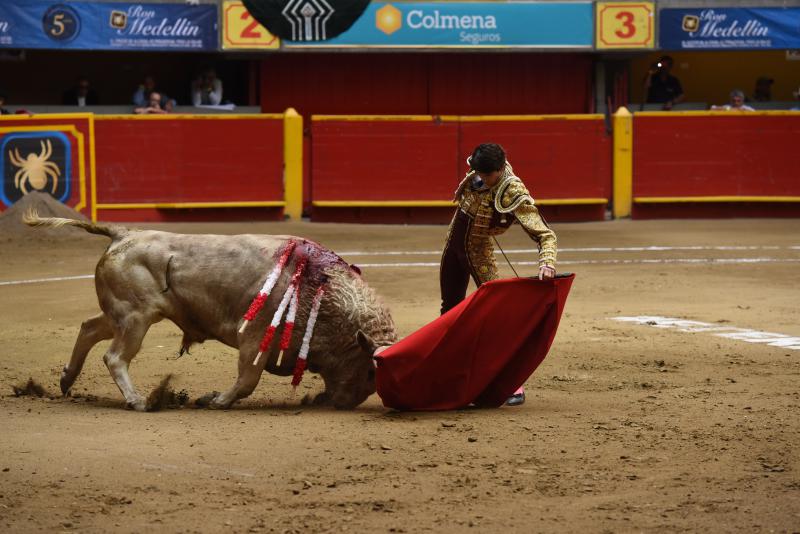 De vacío se fue Sebastián Castella, que se jugó su carta de la verdad y el público se lo reconoció. Sabe estar en esta plaza el francés y por eso es consentido aunque se le exija como al alumno brillante de la clase. El que abrió plaza fue un manso como aquellos corridos en Manizales y no permitió que la faena mantuviera la nota alta del poderoso comienzo. La faena no transmitió porque hubo más brega que hondura y ligazón. El cuarto bis, que saltó al ruedo por partirse el pitón contra un burladero el titular, tuvo algo más de calidad aunque poca fuerza. Capotes arriba que el torito se venía abajo. La cuadrilla lidió al toque del torero y fue en adelante receta de enfermero. Inició cambiando por la espalda y empalmó las series con la derecha con ligazón y mando. El toro fue con franqueza y el torero le dio la receta justa, ayudándole sin bajarle mucho la mano. Los naturales llegaron a media altura entendiendo perfectamente la limitación del toro pero también su bondad. Castella tocó las cuerdas precisas para componer una faena muy importante y que valía para el triunfo. Las orejas se fueron con los despojos del toro porque desacertó con los aceros y escuchó un aviso.