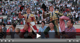 Nimes (Francia), 7 de junio de 2014. Tarde. 5ª de la Feria de Pentecostés. Toros de Garcigrande y uno de Domingo Hernández (3º), de correcta presencia y buen juego en líneas generales salvo el lote de Castella. Destacaron sobremanera 1º y 4º. El Juli: Oreja tras aviso y dos orejas tras aviso; Sebastián Castella: Palmas tras aviso y ovación con saludos tras aviso; Román, que tomaba la alternativa: Dos orejas y palmas tras aviso. Entrada: Lleno de "No hay Billetes". El Juli se cortó con la espada en su primero, pasó a la enfermería pero continuó la lidia sin problemas.