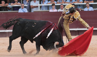 Istres (Francia), domingo 5 de agosto de 2012. Toros de Adelaida Rodríguez, bien presentados aunque desiguales. Manejables en diversos grados. El mejor, el cuarto. Quinto, complicado. DAVID MORA: Palmas tras aviso y oreja; ARTURO SALDÍVAR: Silencio en ambos; THOMAS DUFAU: Silencio y silencio tras aviso.
