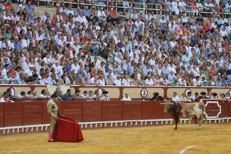 Talavante cortó una oreja del quinto, al que se impuso con poder y mucho temple a un toro con movilidad pero cierta brusquedad. Prodigiosa la mano izquierda, con poderío; un cambio de mano, para enmarcar. Faena intermitente con tandas que no acabaron de romper la faena. La buena estocada fue clave para la oreja.