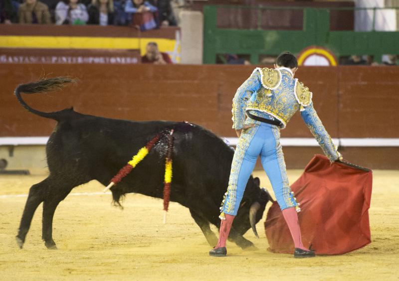 Sedano Vázquez se mostró muy solvente y con oficio durante toda la tarde. Dejó claro que está preparado para compromisos mayores. Se mostró variado con el capote y se le adivina un muletero poderoso. Paseó una oreja de cada uno de sus novillos y abrió una vez más la puerta grande ante sus paisanos.
