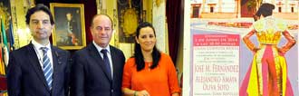 El alcalde de Antequera, Manolo Barón, la teniente de alcalde de Cultura, Festejos y Comunicación, Ana Cebrián, y el empresario taurino José Luis Lara han presentado esta mañana el festejo taurino que formará parte de la inminente Feria de Primavera 2014 en Antequera. Concretamente, se trata de una corrida de toros mixta con dos diestros a pie, Alejandro Amaya y Oliva Soto, así como con el rejoneador José Manuel Fernández, quienes lidiarán un encierro de Las Monjas.