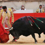 Nimes (Francia). Viernes, 18 de septiembre de 2020. Feria de la Vendimia. Toros de Victoriano del Río y Toros de Cortés (3º), bien presentados y de muy buen juego. El 3º, de nombre Descreído, número 154, negro tostado, de octubre de 2015, premiado con la vuelta al ruedo. Enrique Ponce, oreja tras aviso y dos orejas; Curro Díaz, ovación con saludos y vuelta al ruedo; Emilio de Justo, oreja y ovación con saludos. Entrada: Tres cuartos del aforo permitido. Enrique Ponce fue obligado a saludar una ovación tras el paseíllo, un reconocimiento que compartió con sus compañeros de terna. El picador Germán González fue ovacionado tras el tercio de varas al tercero. Pérez Valcarce saludó tras parear al sexto.