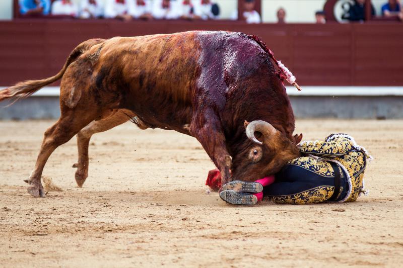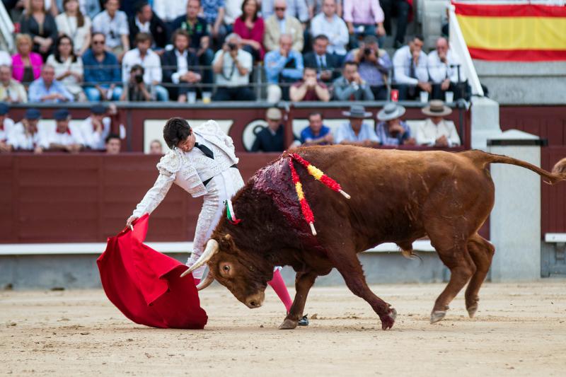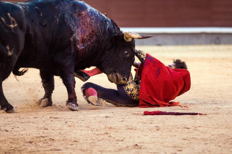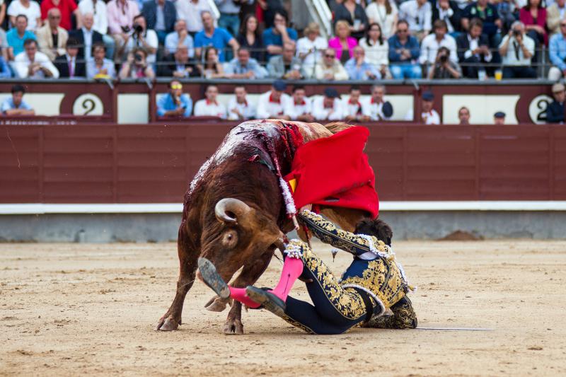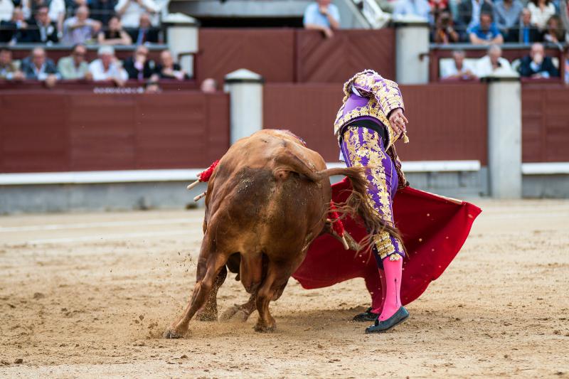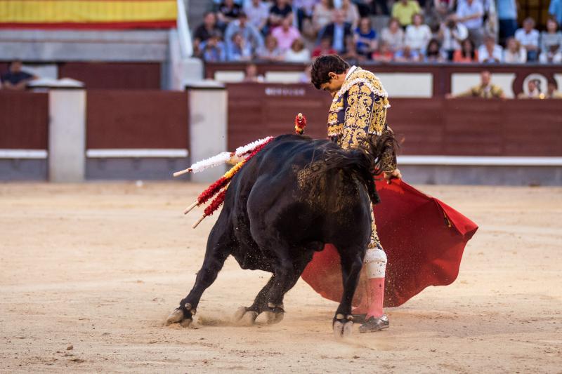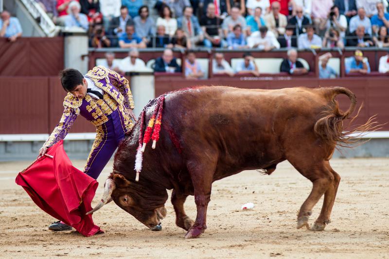 Cumplió en el caballo el segundo, un toro que si bien tuvo nobleza llegó aplomado y sin alma al último tercio. Hizo un meritorio esfuerzo Paco Ureña, queriendo mucho, tanto que cobró una fuerte voltereta de la que salió herido con dos puntazos. Faena larga, de mucho tesón del murciano y muy metido entre los pitones. Remató su actuación de una estocada y fue aplaudido camino de la enfermería.