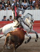 El Lienzo Charro de Lagos de Moreno registró una gran entrada para ver torear ayer a Pablo Hermoso de Mendoza. El jinete español, que cortó tres orejas, arrancó en su primero montando a Villa frente a un toro áspero, que se movía pero sin fijeza y siempre a arreones. Con Van Gogh colocó dos pares al quiebro, muy ajustados ambos y muy del gusto del respetable. Con el propio caballo lo ponía en suerte y lo llevaba de lado a lado de la plaza para cambiarle los terrenos. Cambió de caballo y salió Viriato que aguantó las acometidas desacompasadas del de Chinampas sin inmutarse y se metió en sus terrenos como si aquello no le supusiera esfuerzo. En el último tercio debutó otro caballo de nombre Cartago, con el que puso tres cortas a la rueda y se descolgó para efectuar la suerte del teléfono. Con el rejón de muerte pinchó al primer intento y dejó medio rejón que fue suficiente.