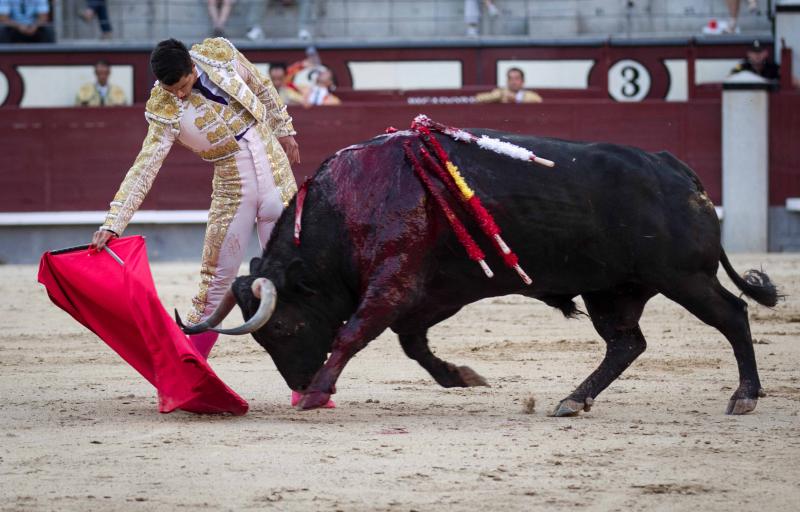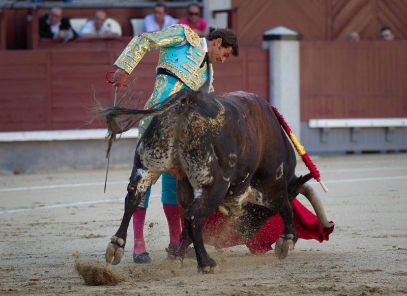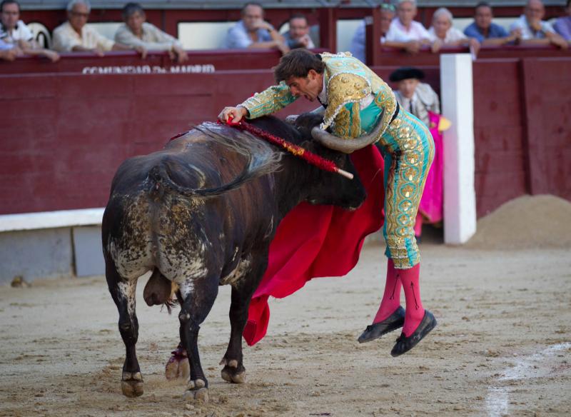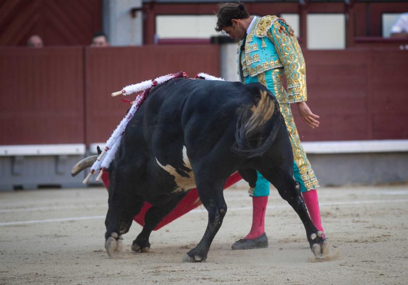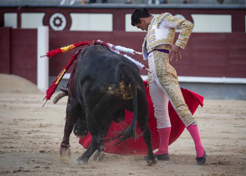 El sexto fue un toro hondo, sin mucha clase pero que tuvo cierta nobleza. José Carlos Venegas estuvo sereno, en una faena sin renuncias y ajustado. El jienense, que pinchó en primera instancia, se quedó colgado del pitón al entrar a matar por segunda vez doliéndose del bajo vientre. Se repuso el torero que descabelló al toro por dos ocasiones y pasó a la enfermería.