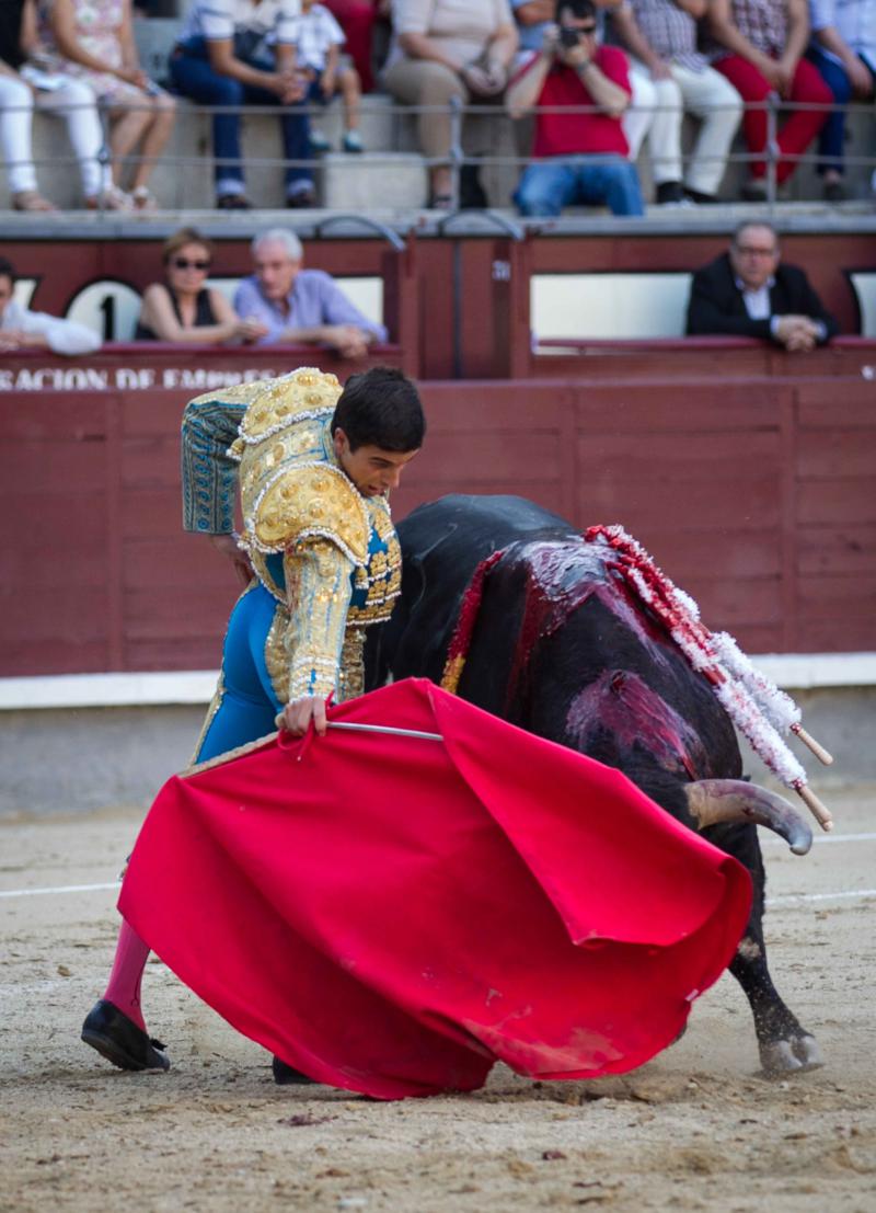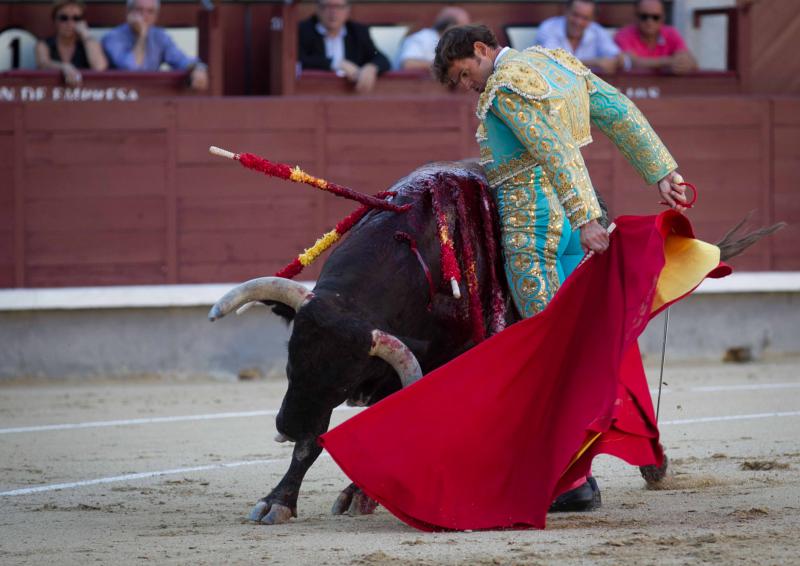 Jairo Miguel fue silenciado tras pasaportar al que hizo segundo, un deslucido toro del Conde de la Maza ante el que el torero extremeño puso dedicación y tiempo en un conjunto sin opciones de lucimiento. El quinto fue un toro bueno de Guardiola, ejemplar serio, de mucha arboladura. Toro a más, noble y de buena condicion. Faena larga de Jairo Miguel, con altibajos, de más afán que logros. Hubo cosas sueltas pero sin llegar a hilvanar faena.
