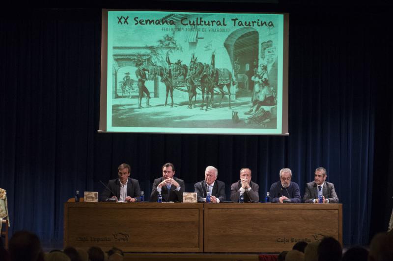 Este miércoles se celebró el acto inaugural de la XX Semana Cultural Taurina de Valladolid, organizada por la Federación Taurina de Valladolid, ante un auditorio abarrotado con más de 400 personas. El alcalde de la ciudad, Óscar Puente, abrió la Semana y fue uno de los protagonistas junto a los exalcaldes Rodríguez Bolaños y León de la Riva, así como los toreros vallisoletanos Manolo Sánchez y Jorge Manrique en un acto intenso. Cada uno expuso sus criterios sobre la Feria de San Pedro Regalado, patrón de Valladolid y de los toreros.