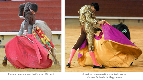 Son dos de los jóvenes más destacados de sus Escuelas Taurinas. Tanto Jonathan Varea como Cristian Climent son los nuevos valores de Castellón y Valencia. Ambos, junto al alicantino Borja Álvarez, harán el paseíllo el próximo 29 de Mazo en la novillada de promoción de la Feria de la Magdalena.