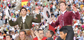 Diego Ventura y Leonardo Hernández han atravesado esta tarde a hombros el umbral de la puerta grande de Las Ventas en una corrida en la que han demostrado su madurez y capacidad.