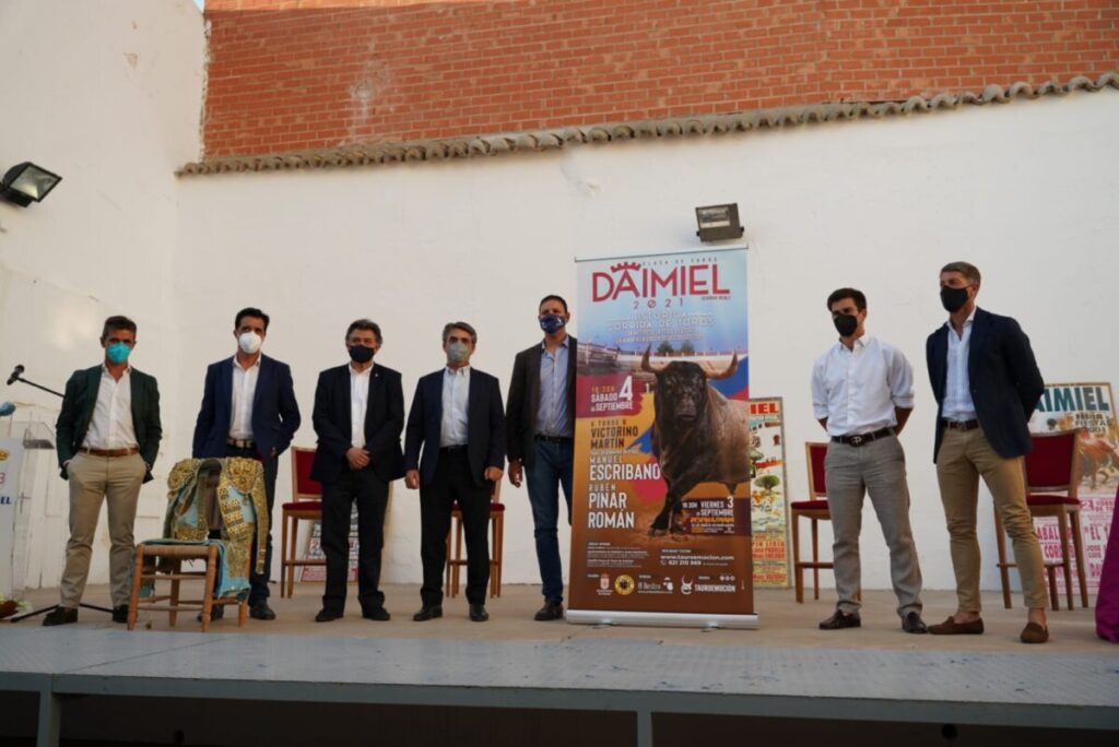 La empresa Tauroemoción, gestora del coso de Daimiel, ha presentado el cartel para la corrida de toros que tendrá lugar el próximo 4 de septiembre. La expectación levantada ha sido máxima, los diestros Manuel Escribano, Rubén Pinar y Román lidiarán un encierro del prestigioso hierro de Victorino Martín, siempre motivo de interés. Al acto de presentación, celebrado en el museo comarcal, han acudido Alberto García, gerente de la empresa, el propio ganadero y dos de los toreros anunciados.