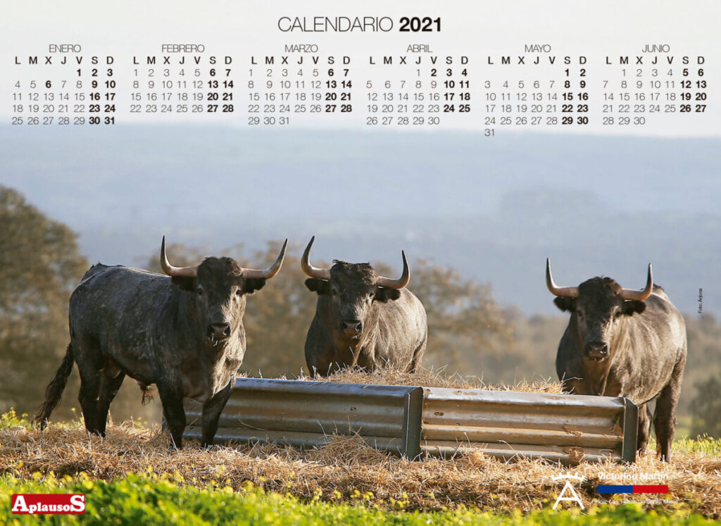 En esta ocasión, el calendario de 2021 lo protagonizan dos de las ganaderías señeras del campo bravo: Miura y Victorino Martín. Dos espectaculares miuras y tres victorinos, todos ellos desafiantes, sin fundas, en la libertad del campo.